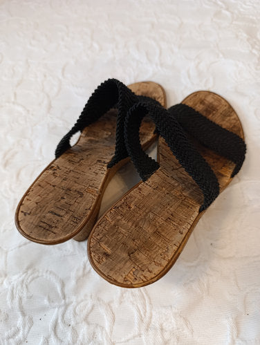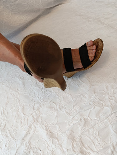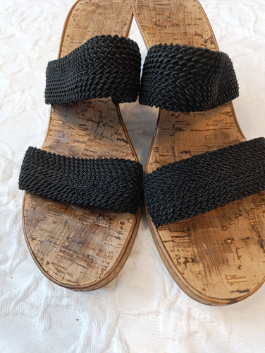 Getragene braune Keilsandale korkoptik Keilabsatz 7 cm Plateau Gr. 37