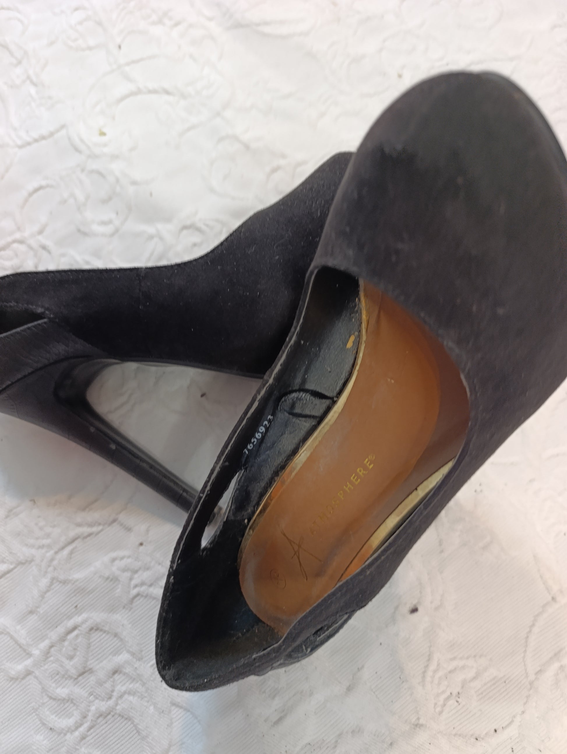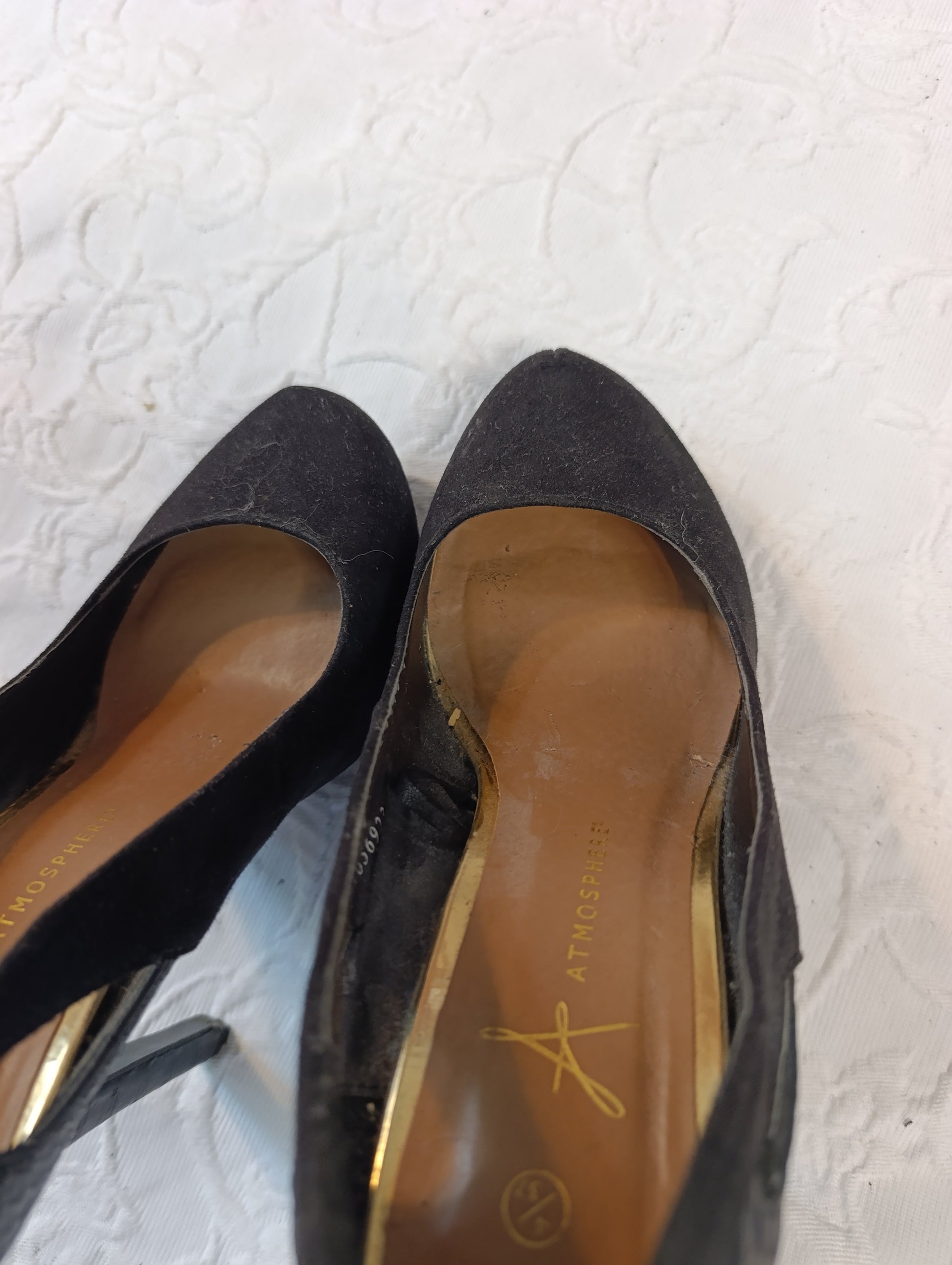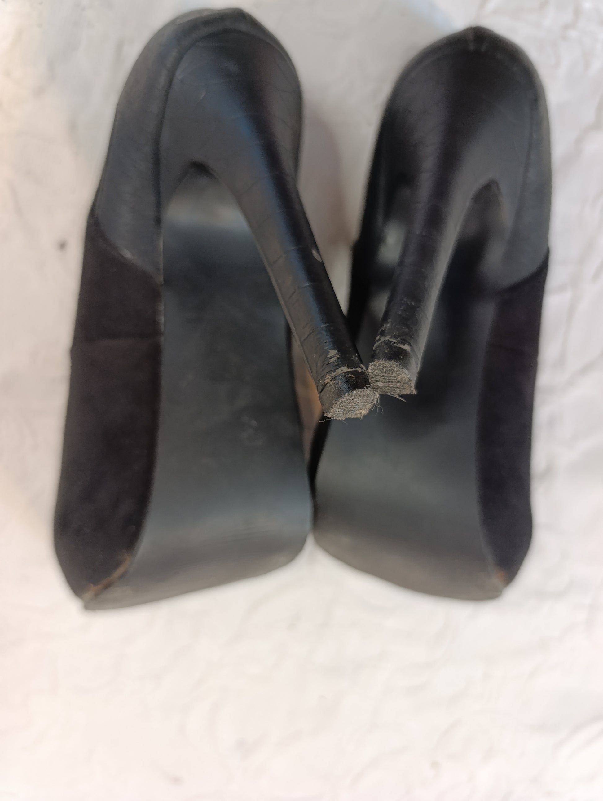 Getragene High Heels, schwarz, samtoptik, Größe 37, Absatz 11 cm, Atmosphere