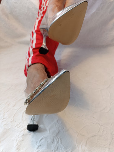 Getragene High Heels transparent Größe 40 11 cm Absatz silber