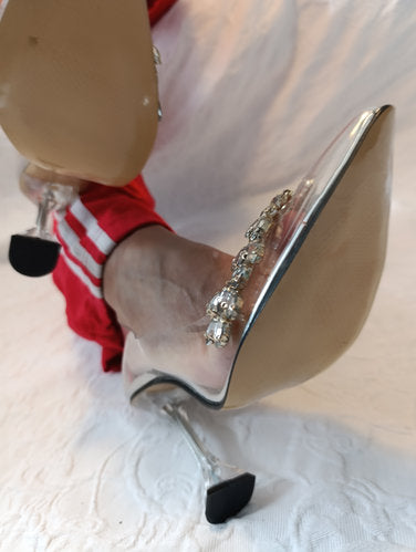 Getragene High Heels transparent. Mit einem 11 cm hohen Absatz.
