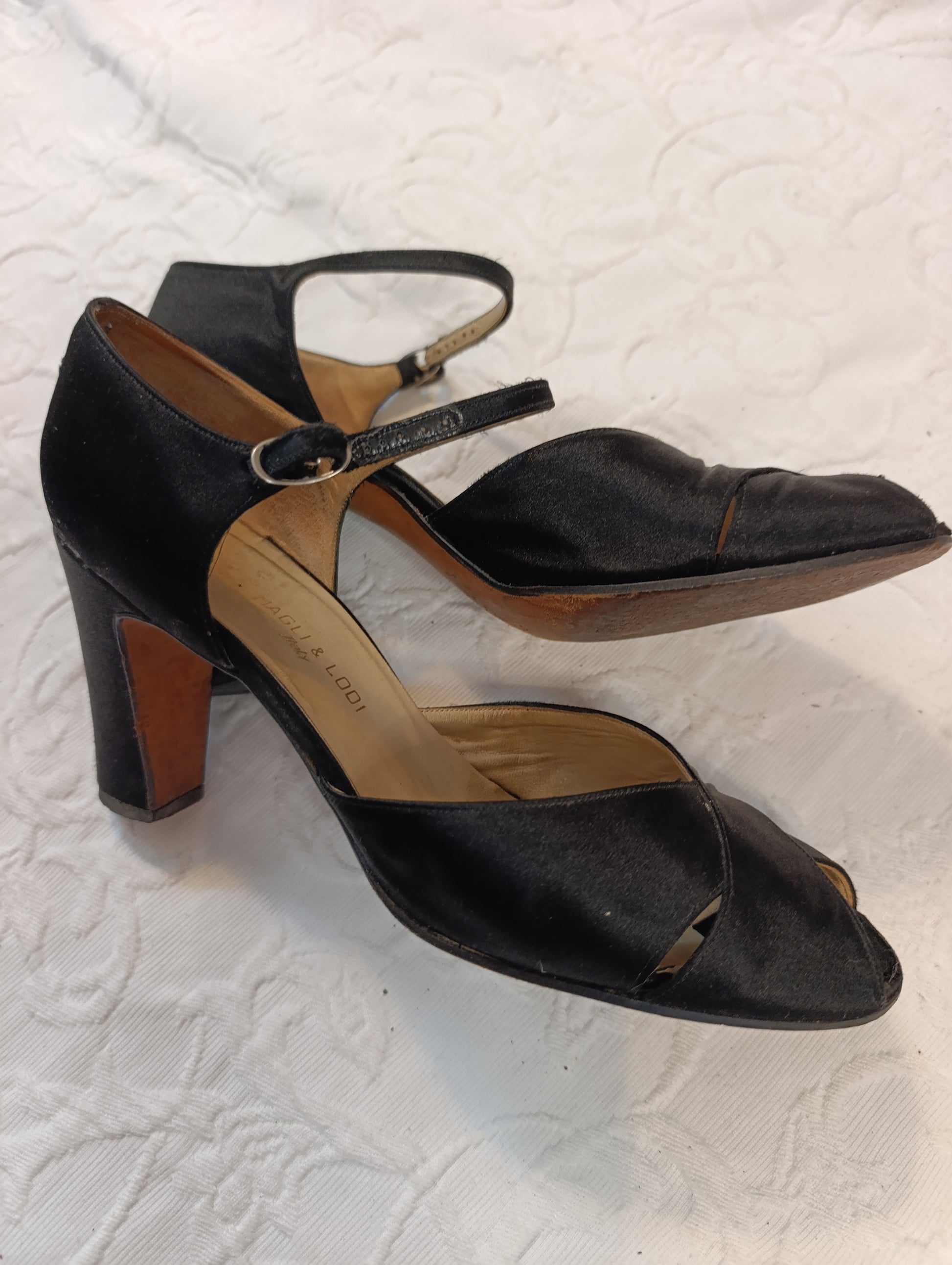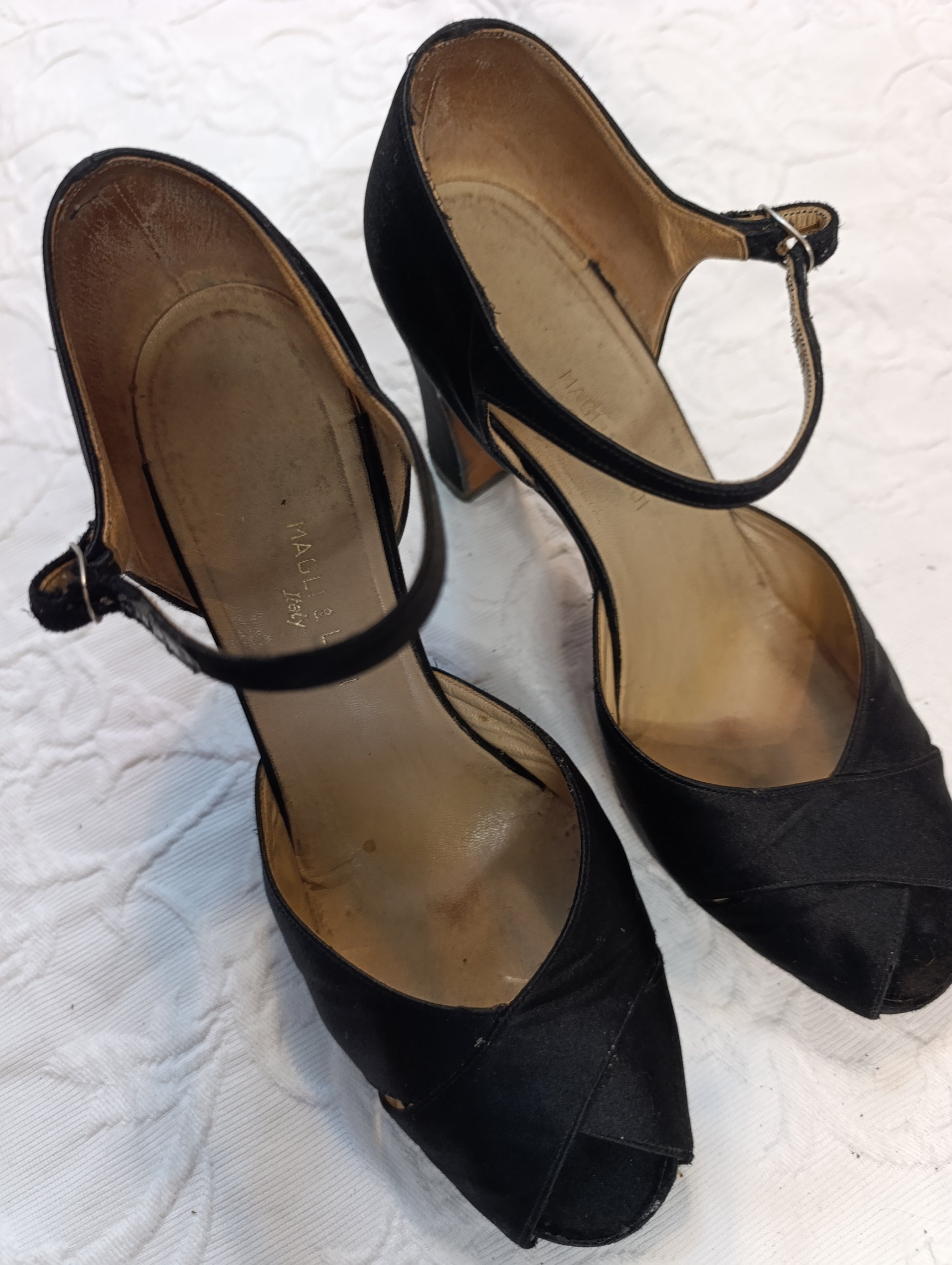 Getragene, offene High Heels, Damensandale, Absatz 9 cm, Größe 38 Magli & Lodi