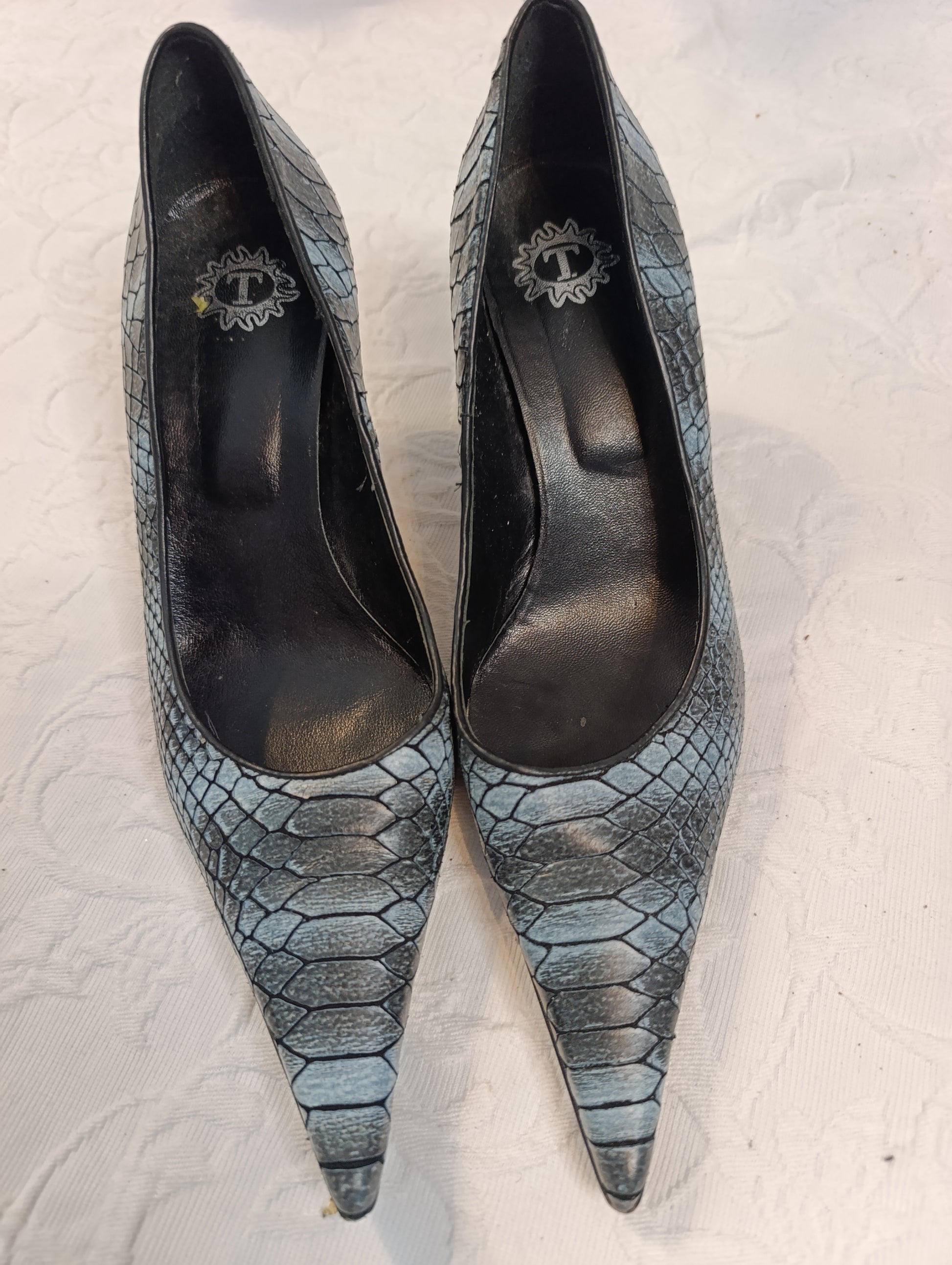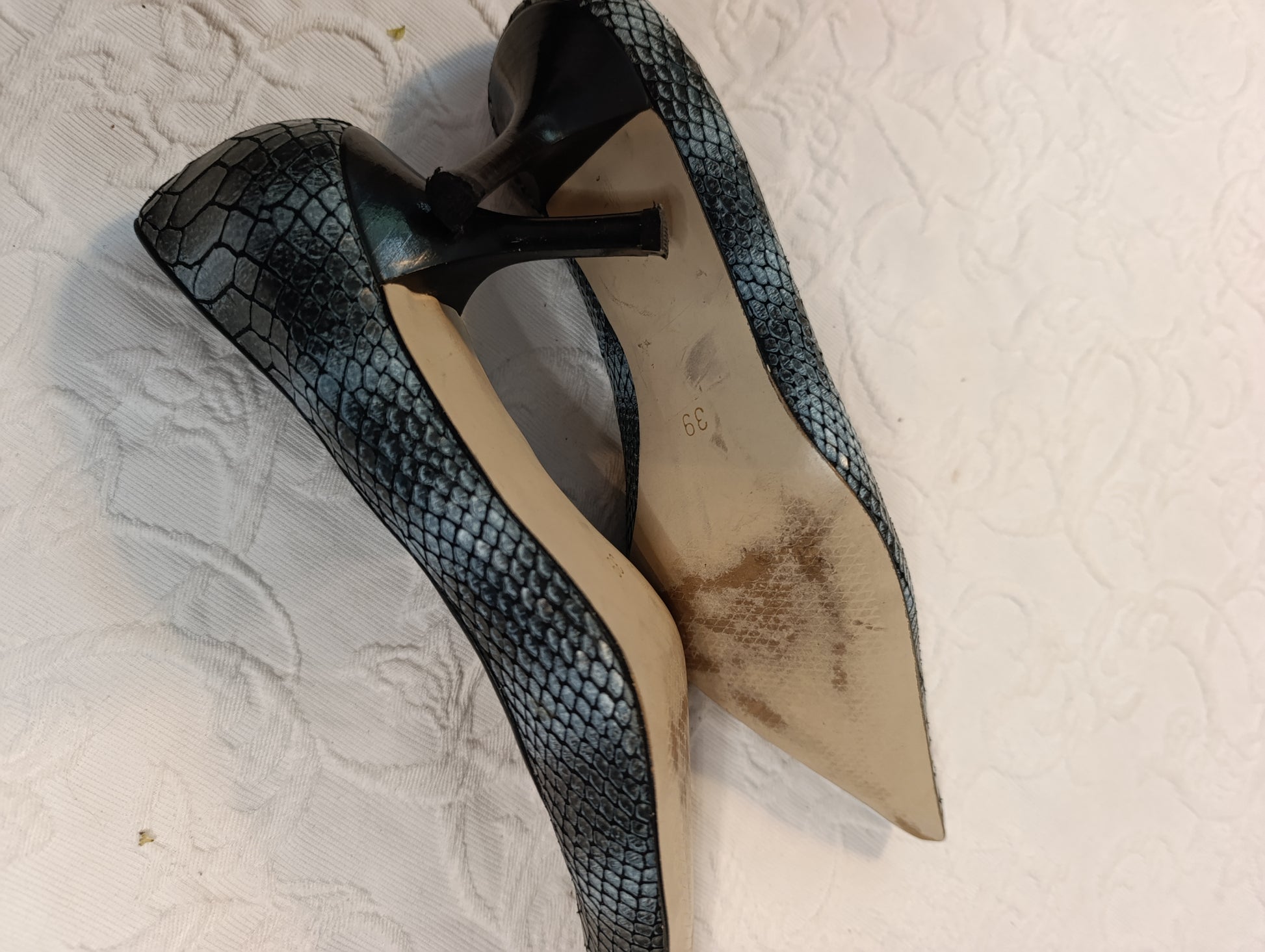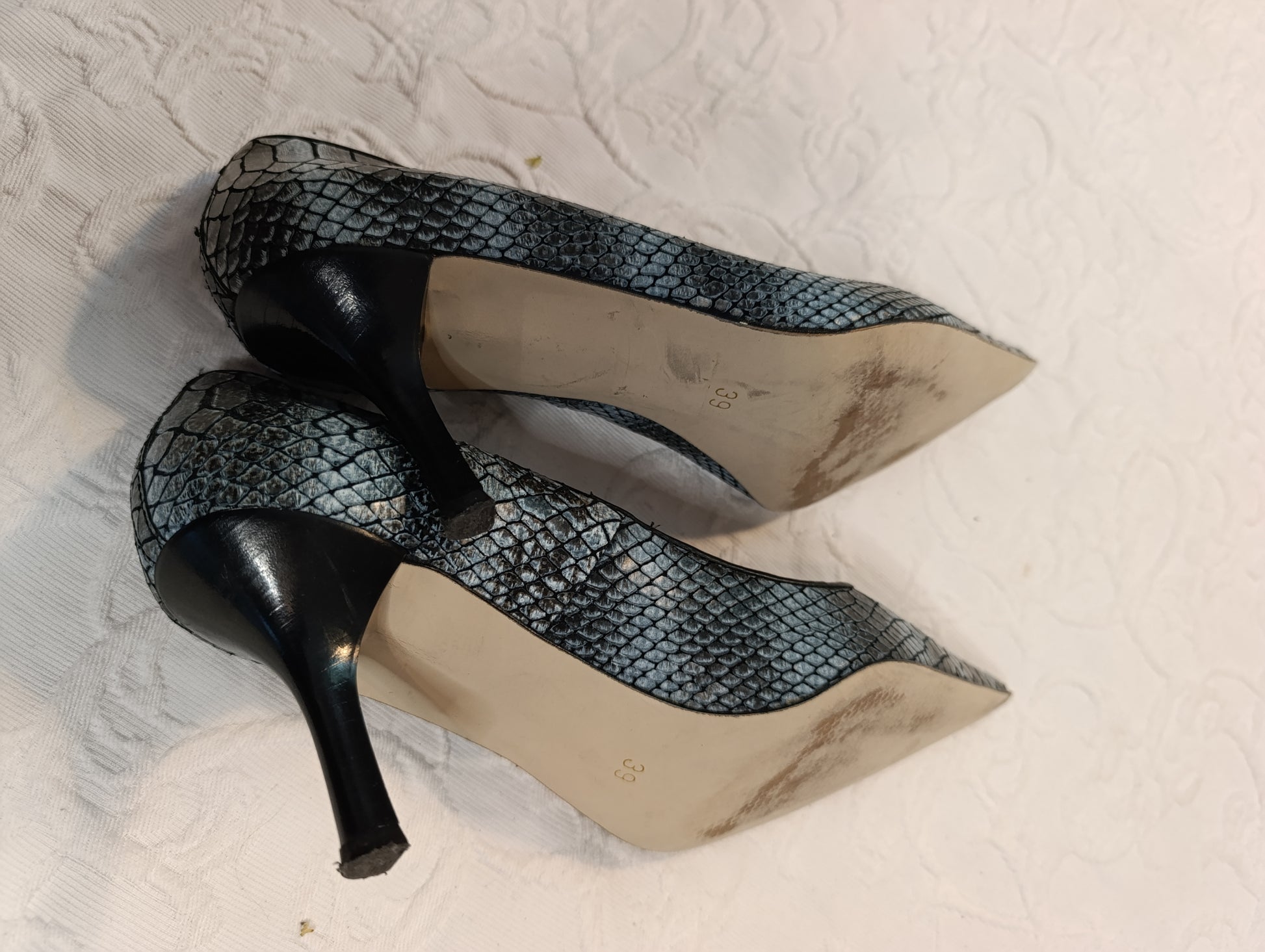 Getragene Pumps, schlangenoptik, Absatz 8 cm, Größe 39 T