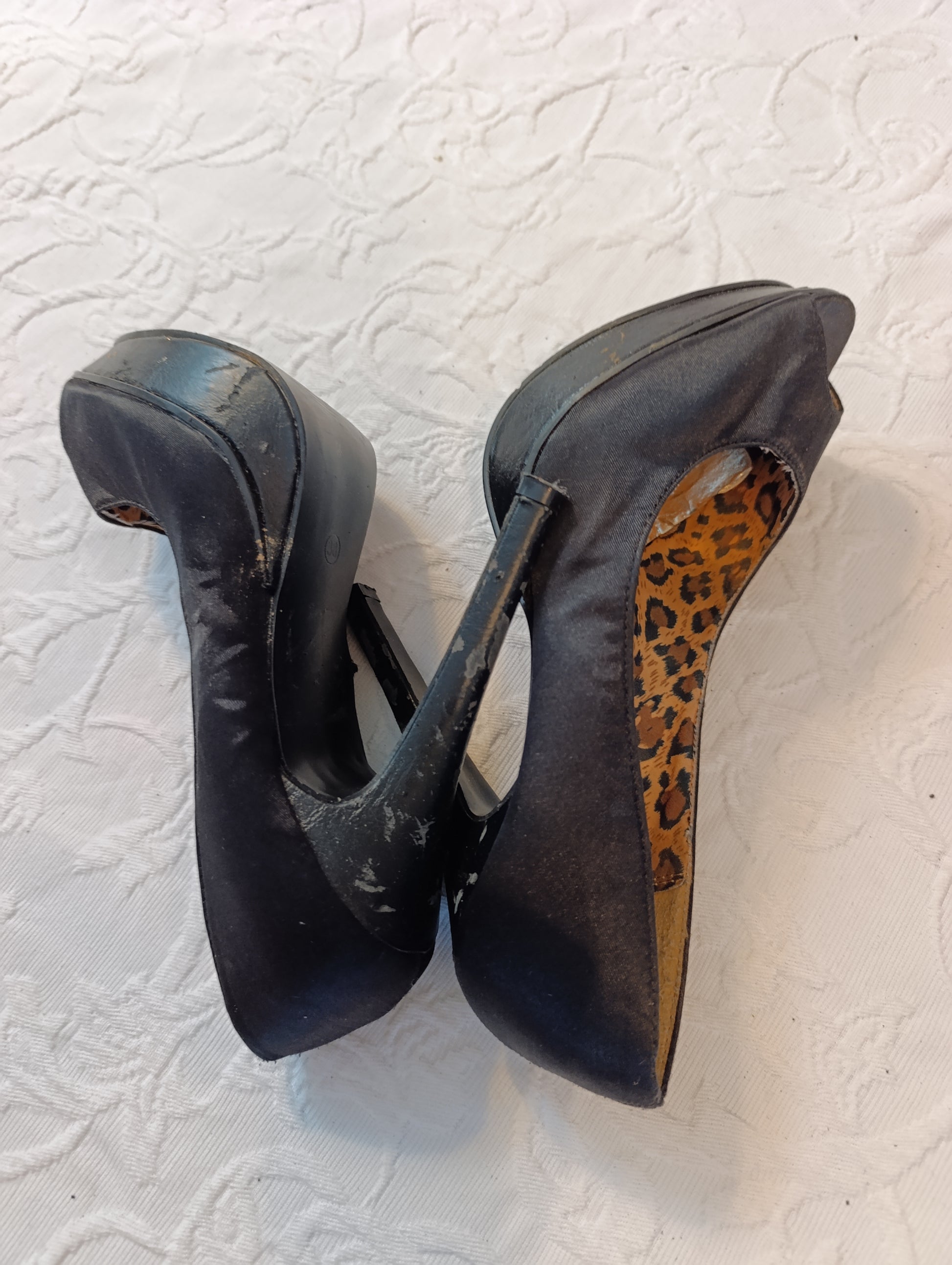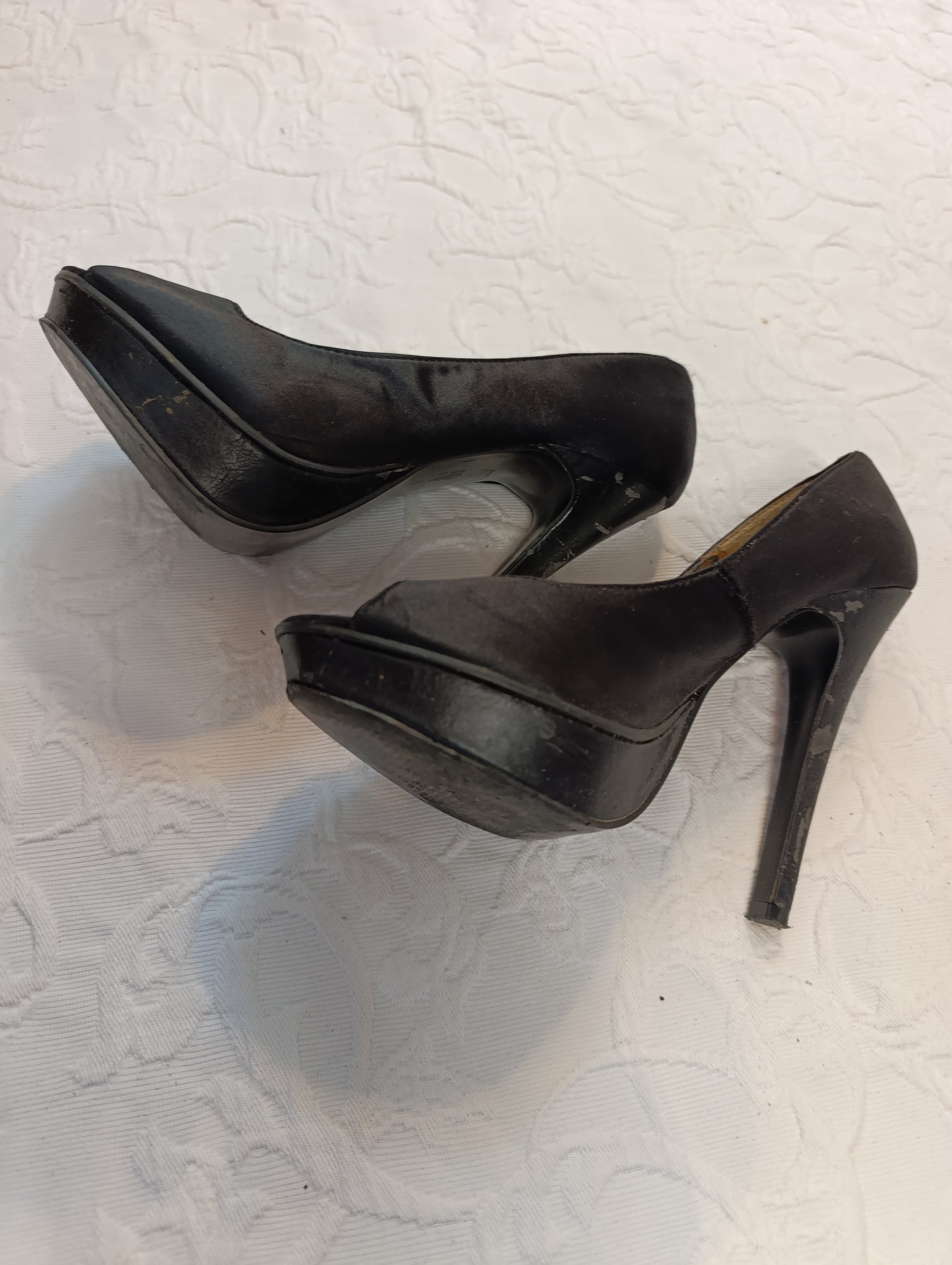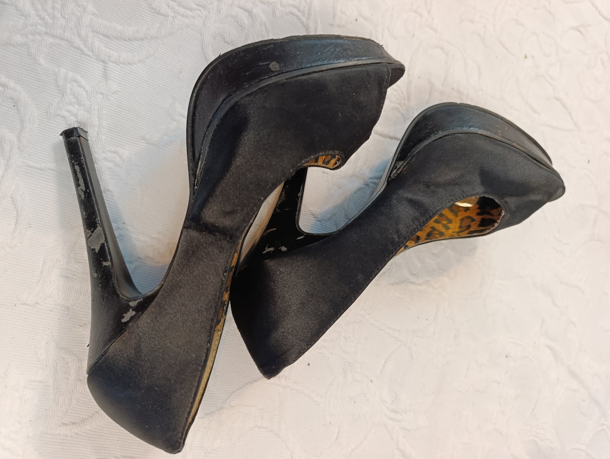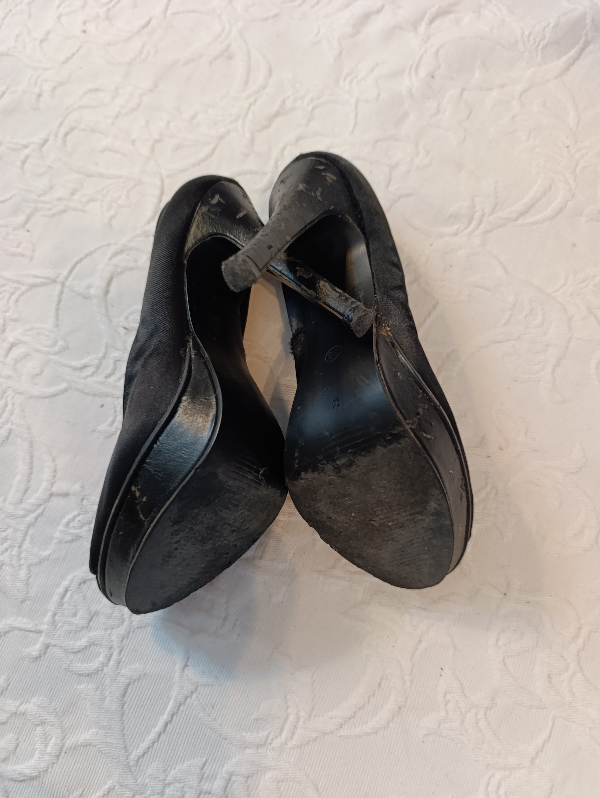 Getragene HighHeels, PeepToe schwarz, Absatz 12,5 cm, Größe 38 Lilagirl