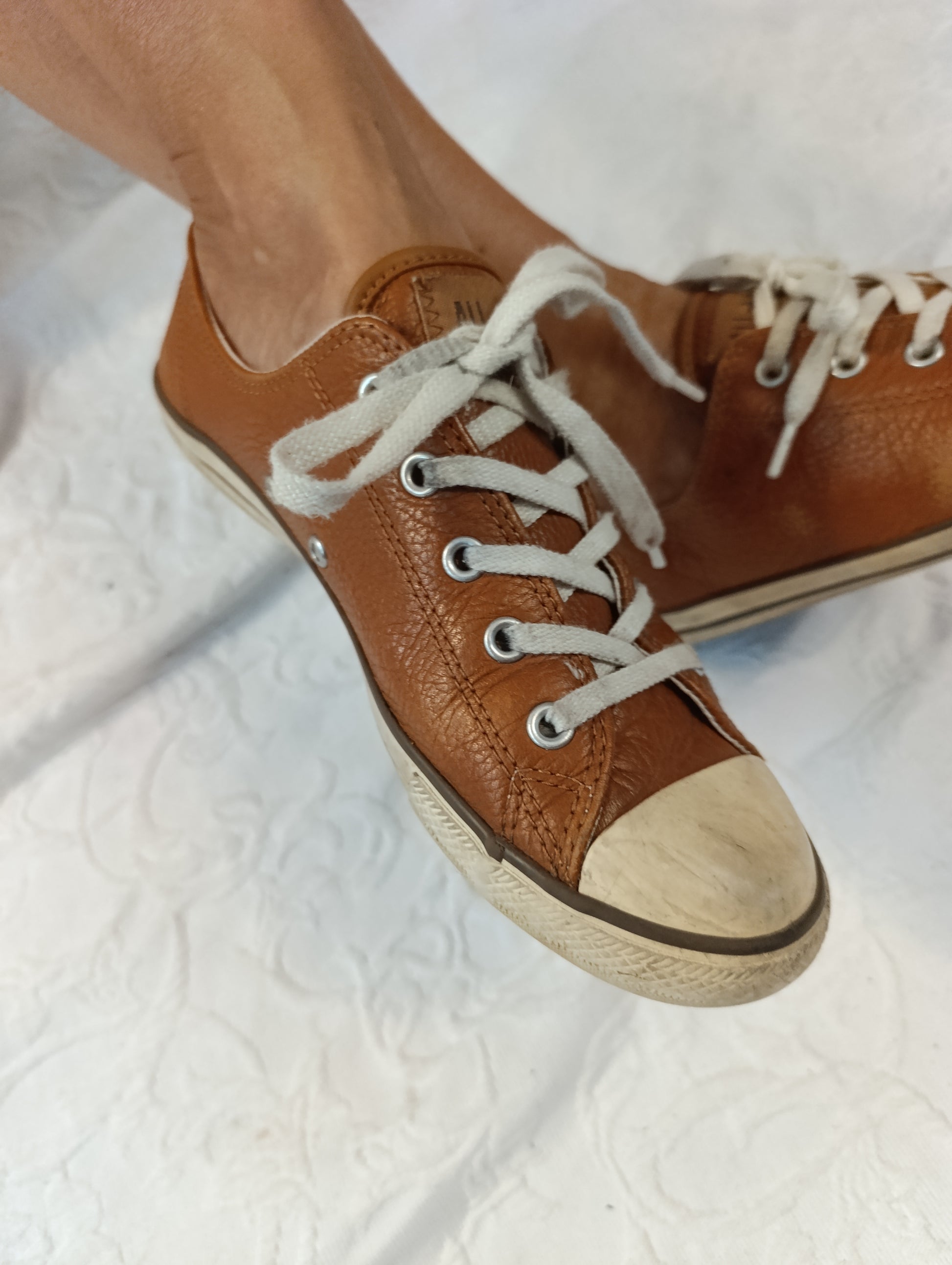 Getragene, stark abgenutzte, braune Converse All Star Größe 38,5