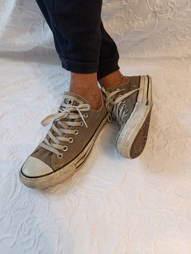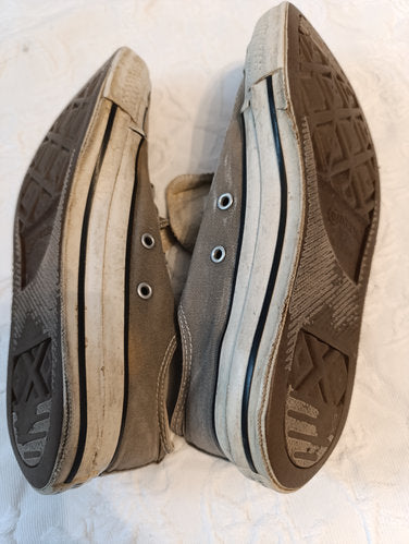 Getragene, stark abgenutzte, graue Converse, All Star Größe 38