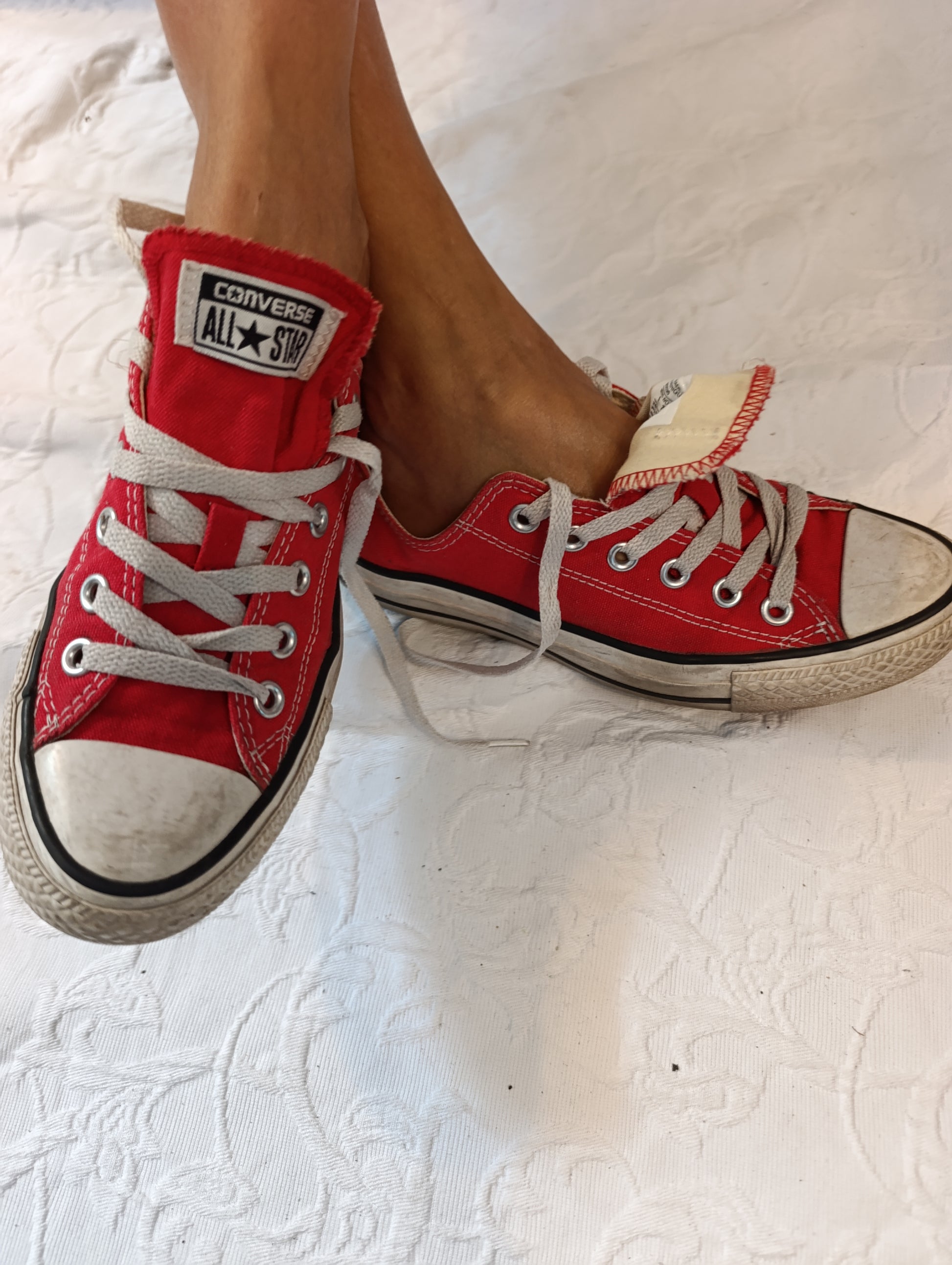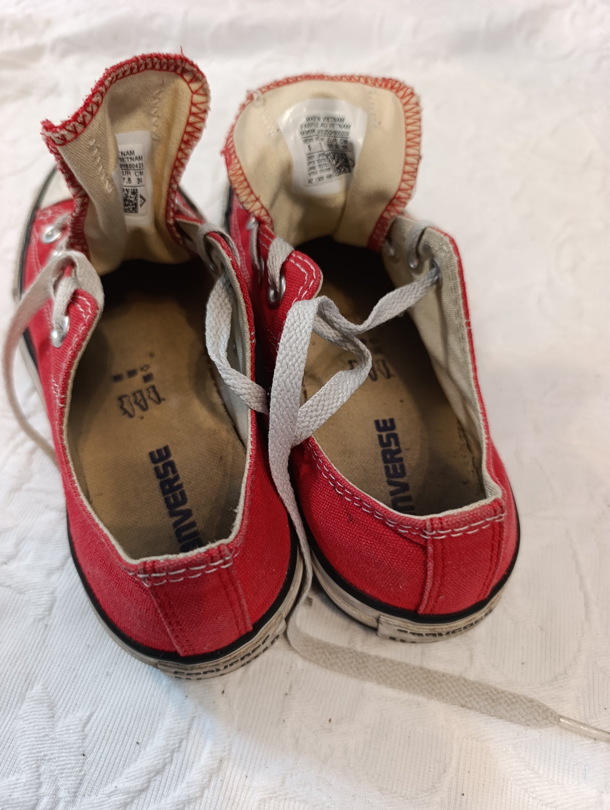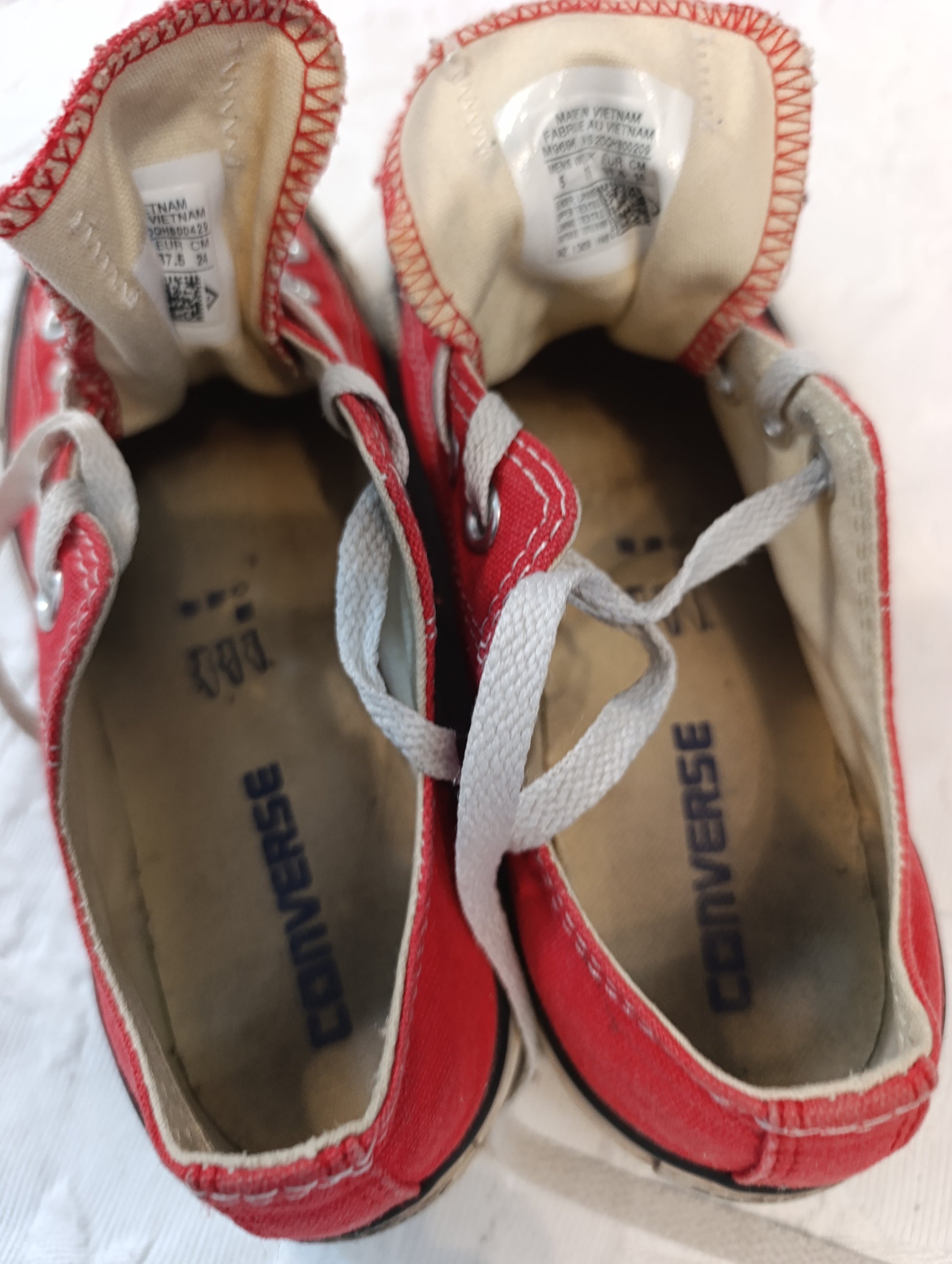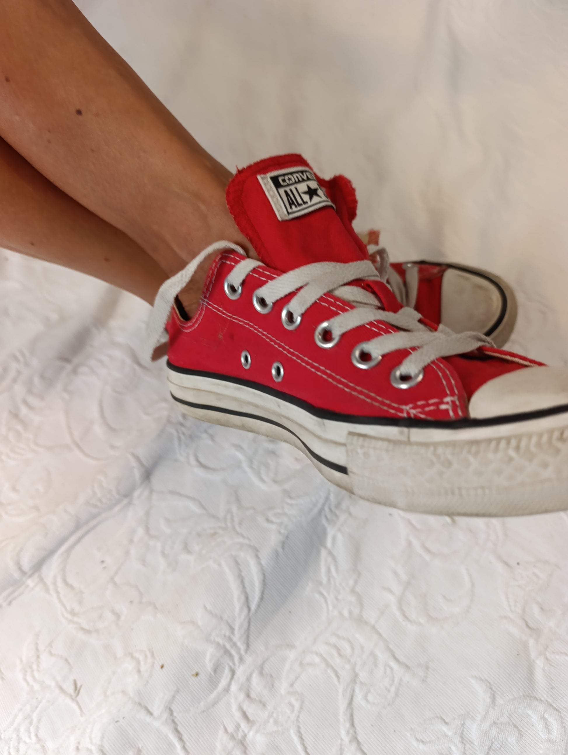 Getragene, stark abgenutzte, rote Converse All Star Größe 37,5