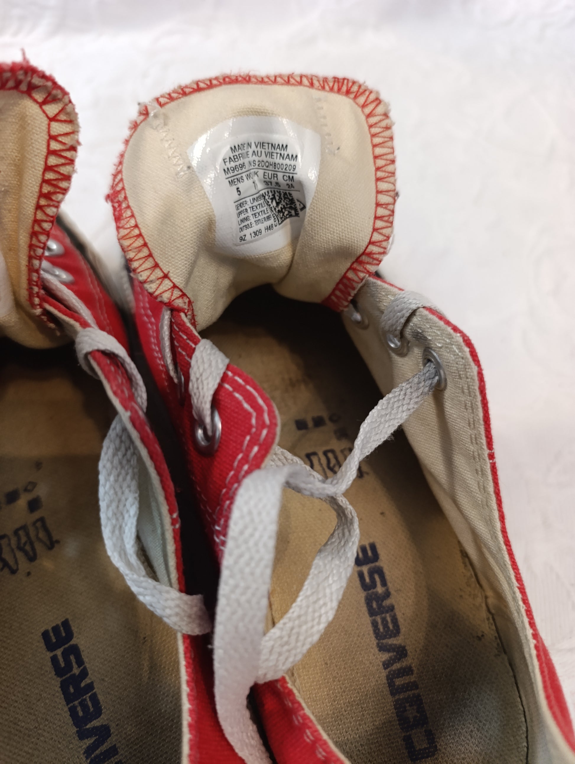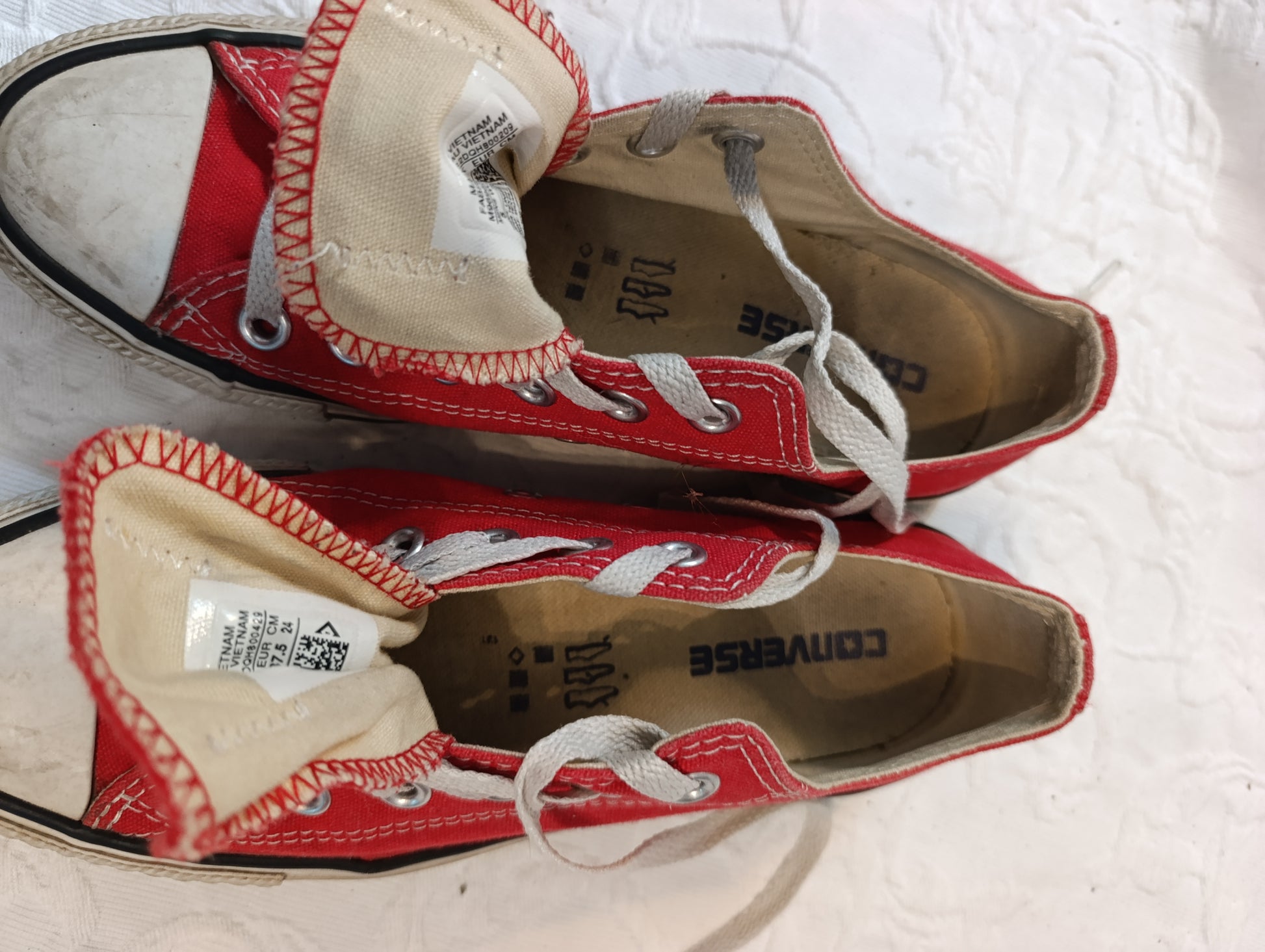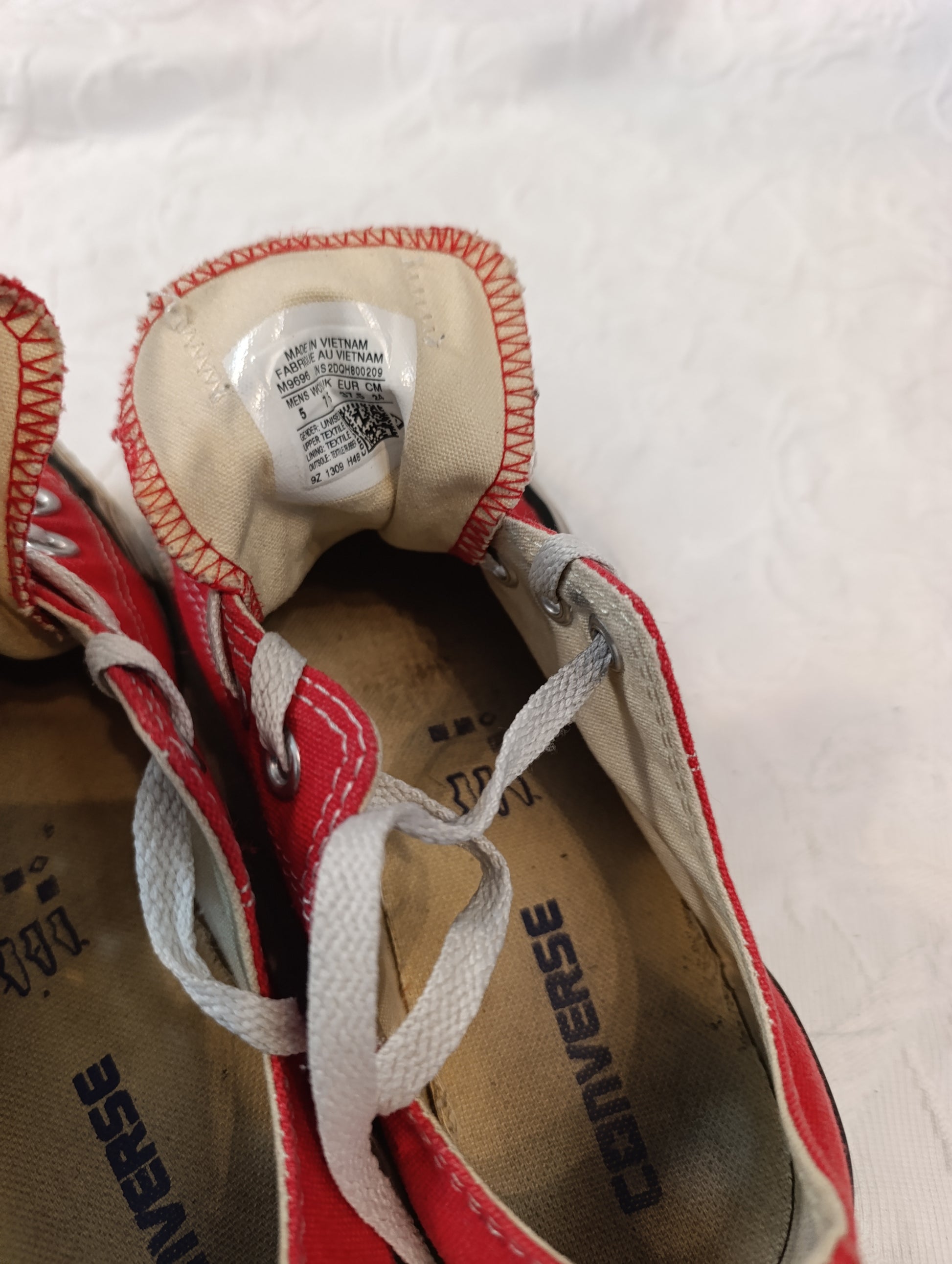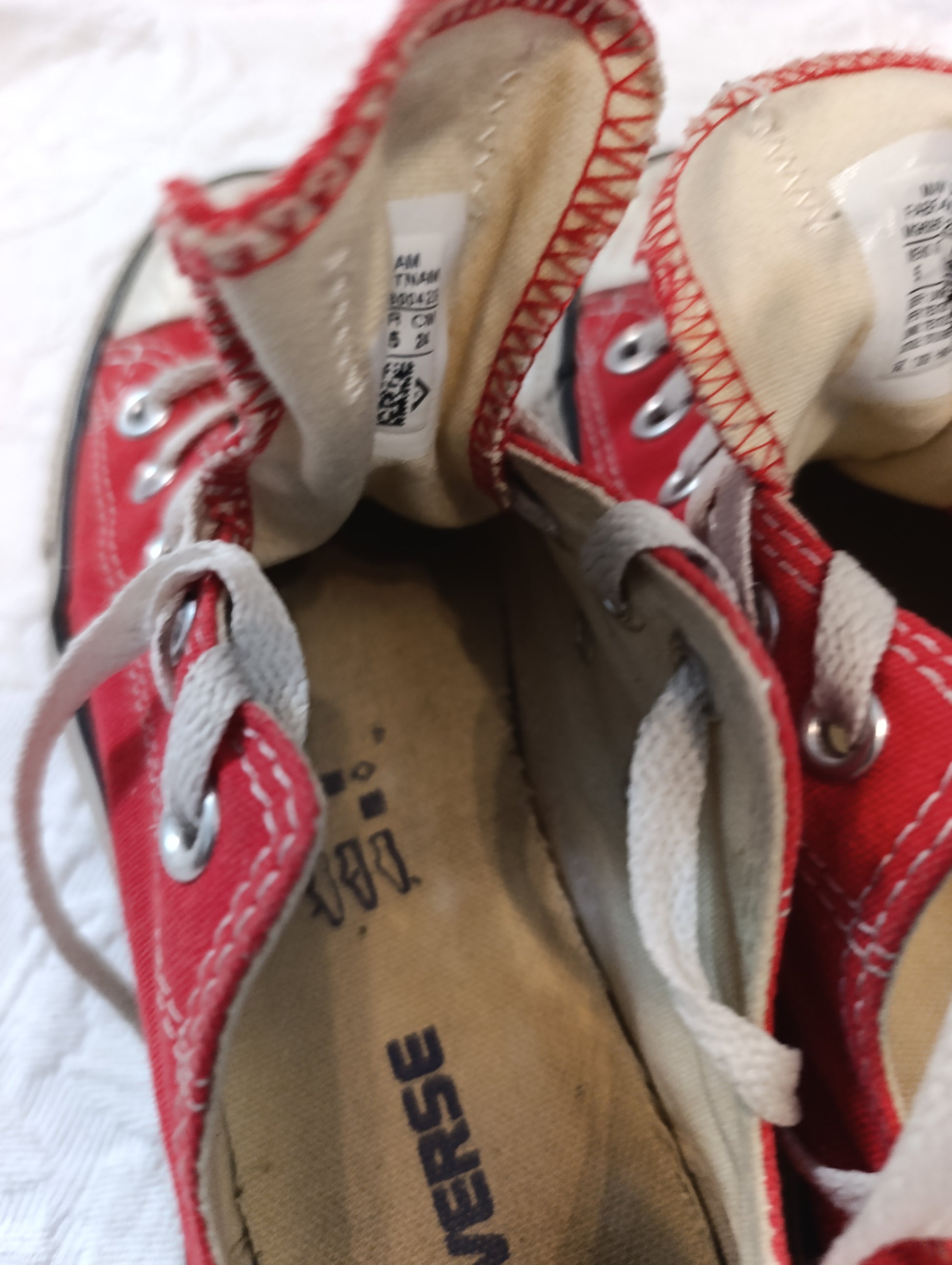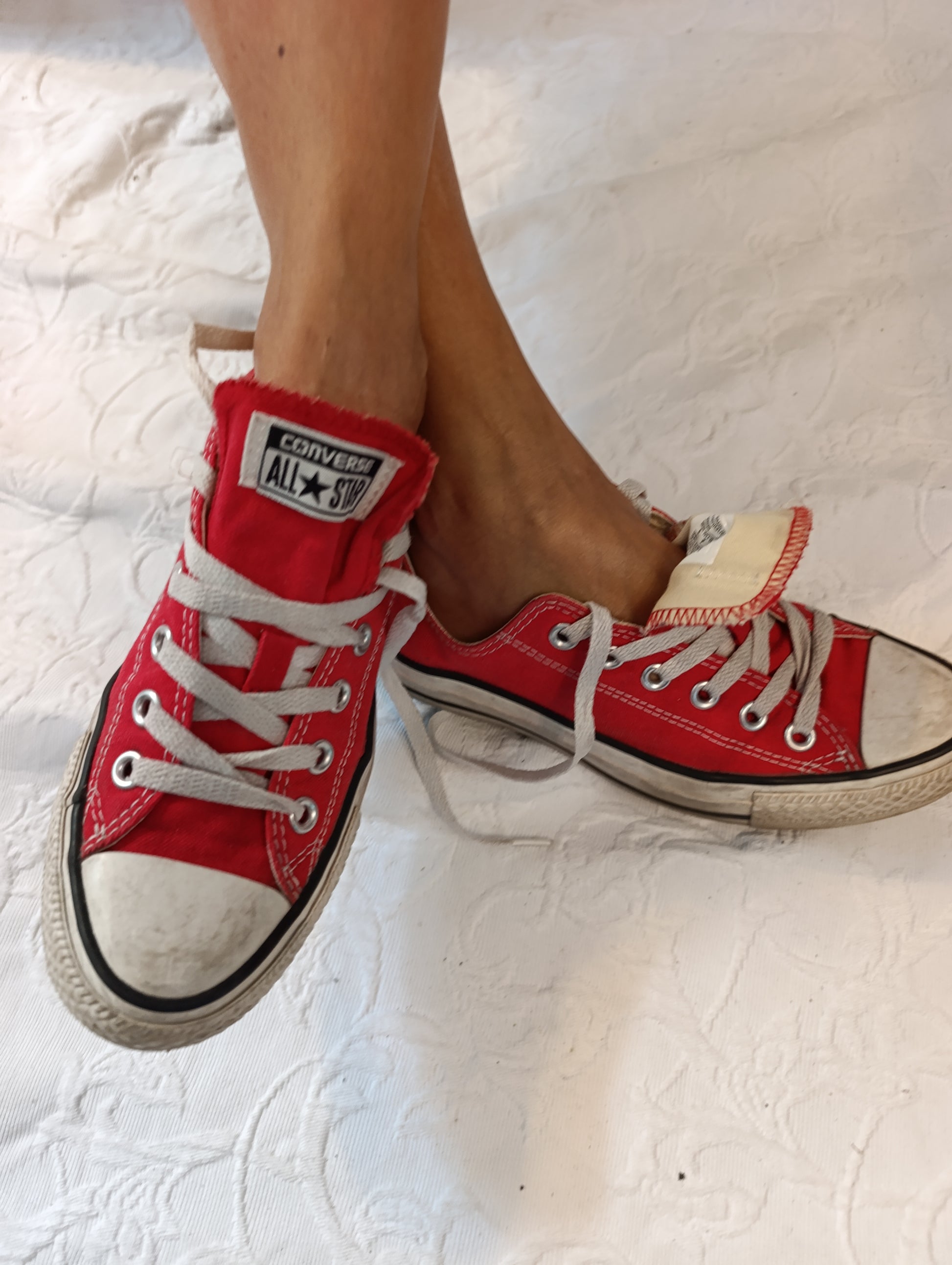 Getragene, stark abgenutzte, rote Converse All Star Größe 37,5