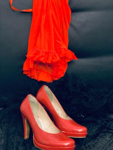 Getragener Damenschuh High Heel rot lack Tamaris Gr 38