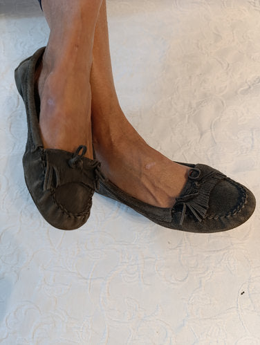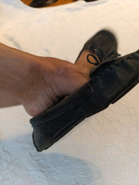 Mokassin sind eine tolle Sache. Mokassin sind natürlich super bequem. Aber auch hier gilt bequem muss nicht unbedingt unerotisch sein. Man sieht schön viel vom Fuß der in einem kleinen niedlichen Schühchen steckt.